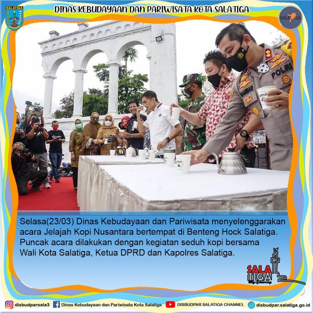 Selasa (23/03) Dinas Kebudayaan dan Pariwisata menyelenggarakan acara Jelajah Kopi Nusantara bertempat di Benteng Hock Salatiga. Puncak acara dilakukan dengan kegiatan seduh kopi bersama Wali Kota Salatiga, Ketua DPRD dan Kapolres Salatiga.
