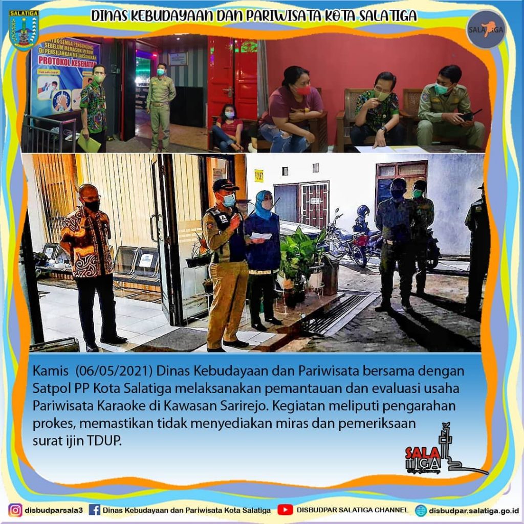 Kamis (06/05/2021) Dinas Kebudayaan dan Pariwisata bersama dengan Satpol PP Kota Salatiga melaksanakan pemantauan dan evaluasi usaha
