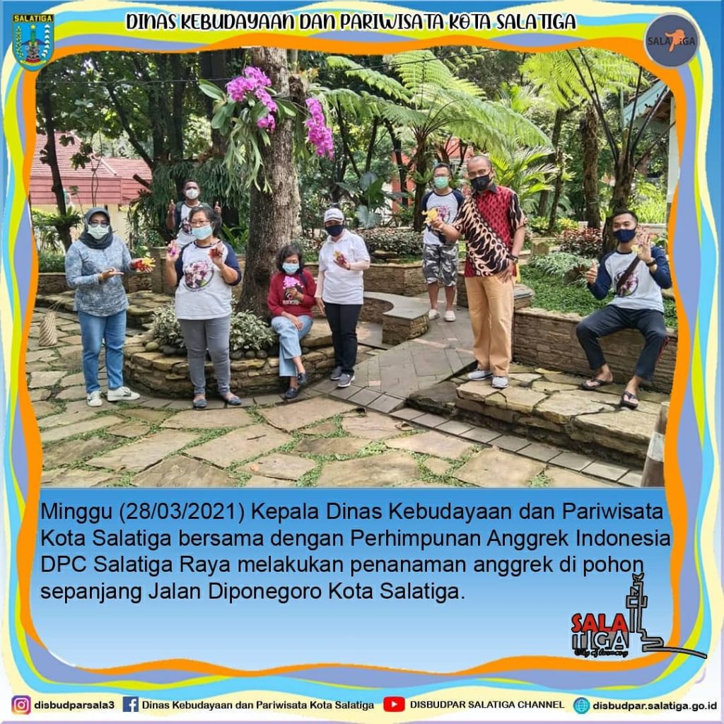 Minggu (28/03/2021) Kepala Dinas Kebudayaan dan Pariwisata Kota Salatiga bersama dengan Perhimpunan Anggrek Indonesia DPC Salatiga Raya melakukan penanaman anggrek di pohon sepanjang Jalan DIponegoro Kota Salatiga.